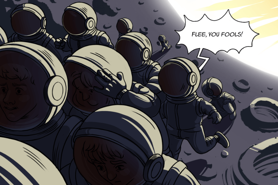 Make no mistake, this was meant to be just another daily, humdrum, run-of-the-mill, get-someone-else-down-to-the-Moon-base-might-as-well-make-it-a-dog kind of a mission; true that! Regardless, it still cost them money (enough to buy me an entire forest of trees to pee on, in fact.) Won’t those humans do something?